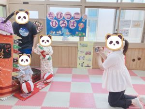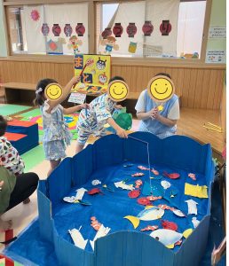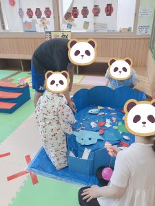この日は、乳児室と談話室が夏祭り仕様に🎆