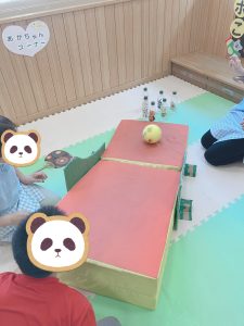 いつものアスレチックの斜面を使ってボーリング♬